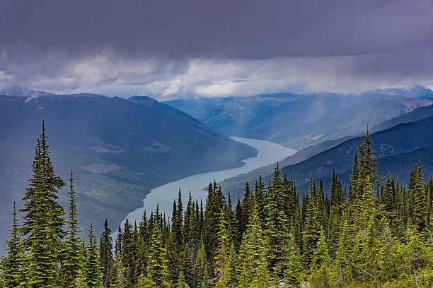 This river is vital to the region. It waters fields and feeds fishermen. Farther downstream it carries ships and marks a boundary. Our own province takes its name from this river, as early settlers traveled up its length into what became British Columbia.